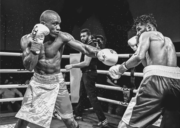 Boxing ll - Kraftfullt svartvitt fototapet med boxning och kamp by Reza Mohammadi