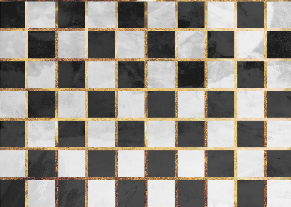Checkerboard black gold white concrete