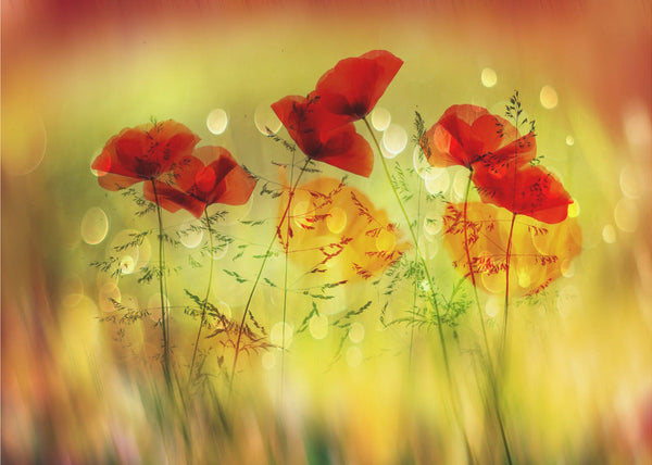 Dancing - Fototapet med dansande vallmor i rött