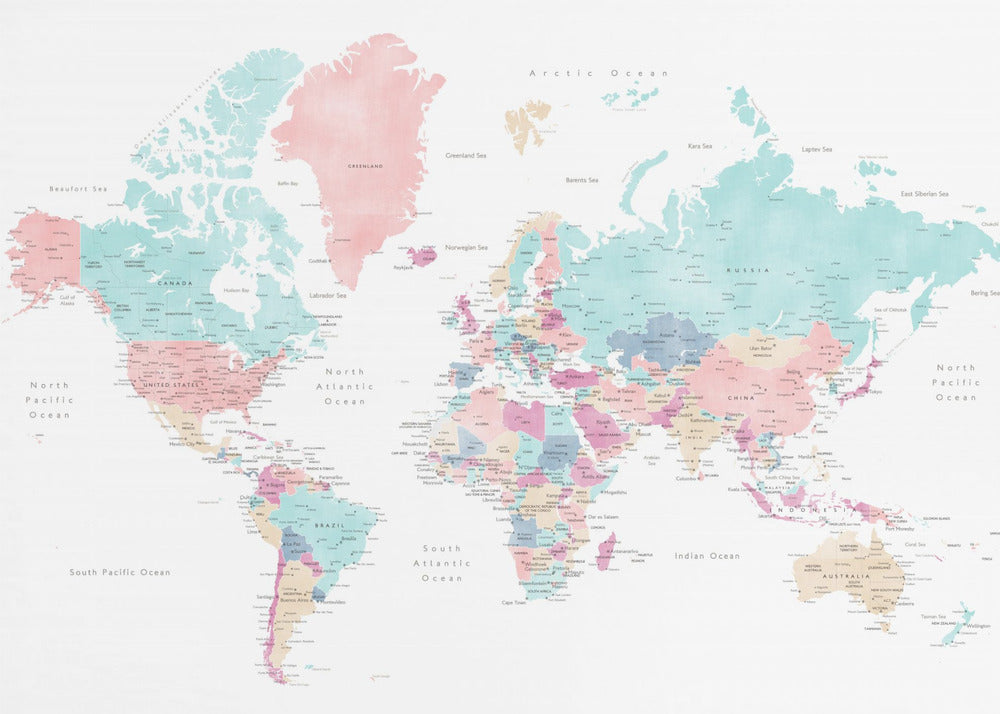 Distressed pastels world map with cities, Carmen