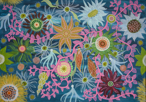 Ellinors Flower Power - Blue - Färgstarkt fototapet med blommor i blå toner