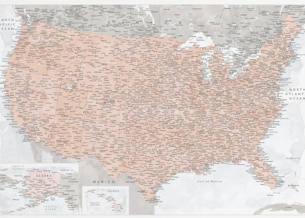 Highly detailed map of the United States, Lynette