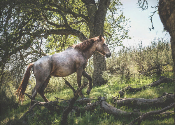 Den ensamma hästen bland träden och det gröna gräset ger rummet en lugn och naturlig känsla. Perfekt för sovrum, vardagsrum eller som en avkopplande accent i hallen. Sommarlandskapet och den pastorala stämningen skapar djup och reflektion som påminner om naturens enkla skönhet.