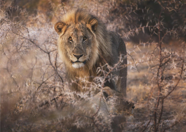 Ett majestätiskt fototapet som fångar lejonets kraft och värdighet. Denna kraftfulla bild av lejontamens intensiva blick skapar en dramatisk atmosfär i ditt hem. Den varma gyllene tonen och de skarpa detaljerna gör detta fototapet till en perfekt accent för vardagsrum, sovrum eller kontor.